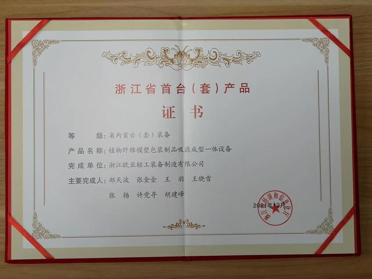 > 歐亞輕工:植物纖維模塑一體機獲得浙江省首臺套證書